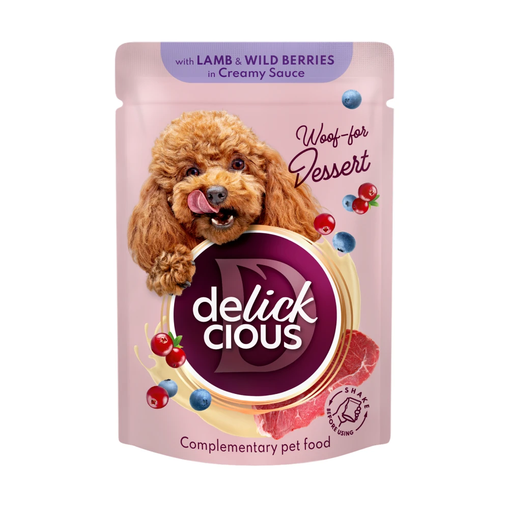 Вологий корм для собак Delickcious Пластівці з ягнятиною та лісовими ягодами у вершковому соусі 0,08кг